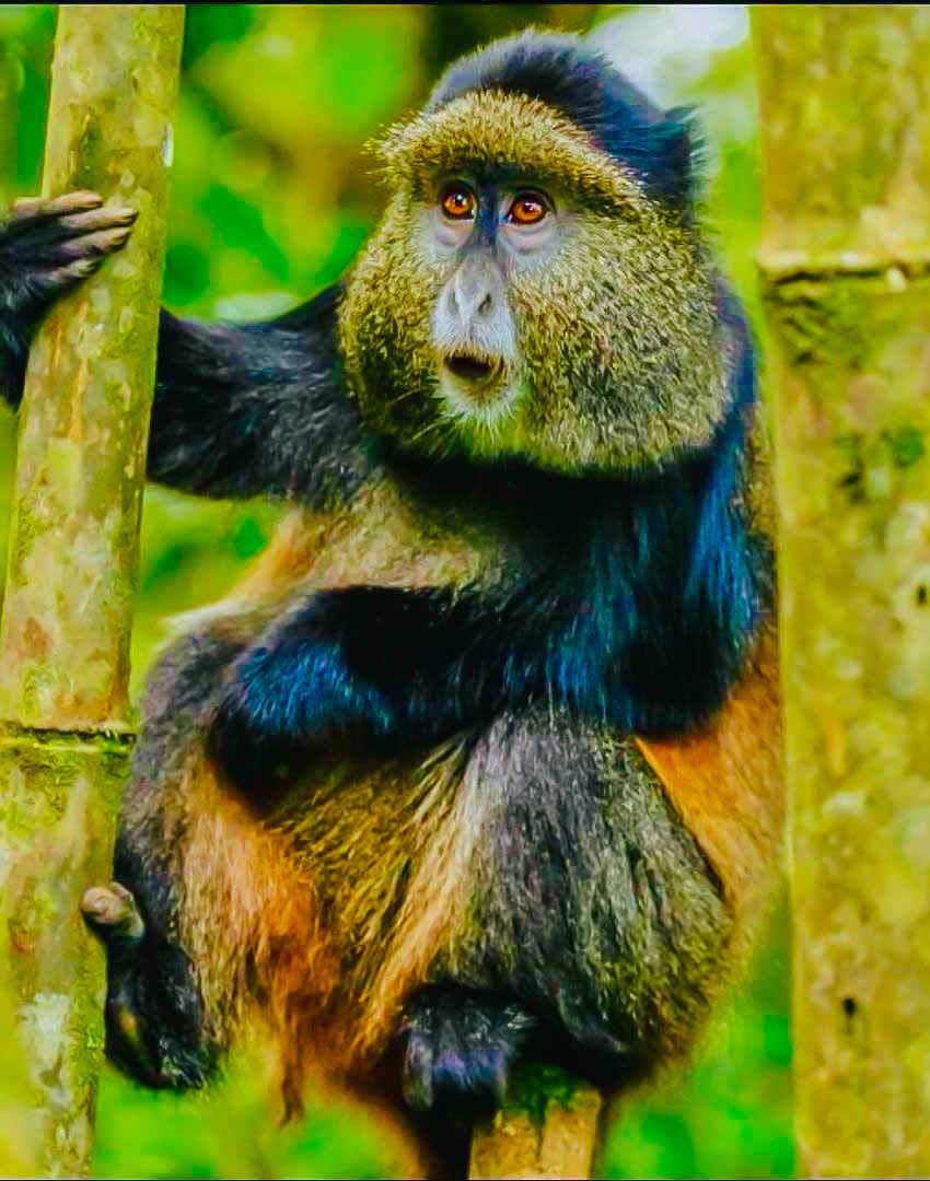 Begin your journey with an early morning departure from Kigali (4:30 AM) or Musanze (6:30 AM). Arrive at Kinigi Park Headquarters by 7:00 AM for a short briefing from park guides. Then, set off on your golden monkey trek through scenic bamboo forest terrain at the foot of the Virunga Mountains.